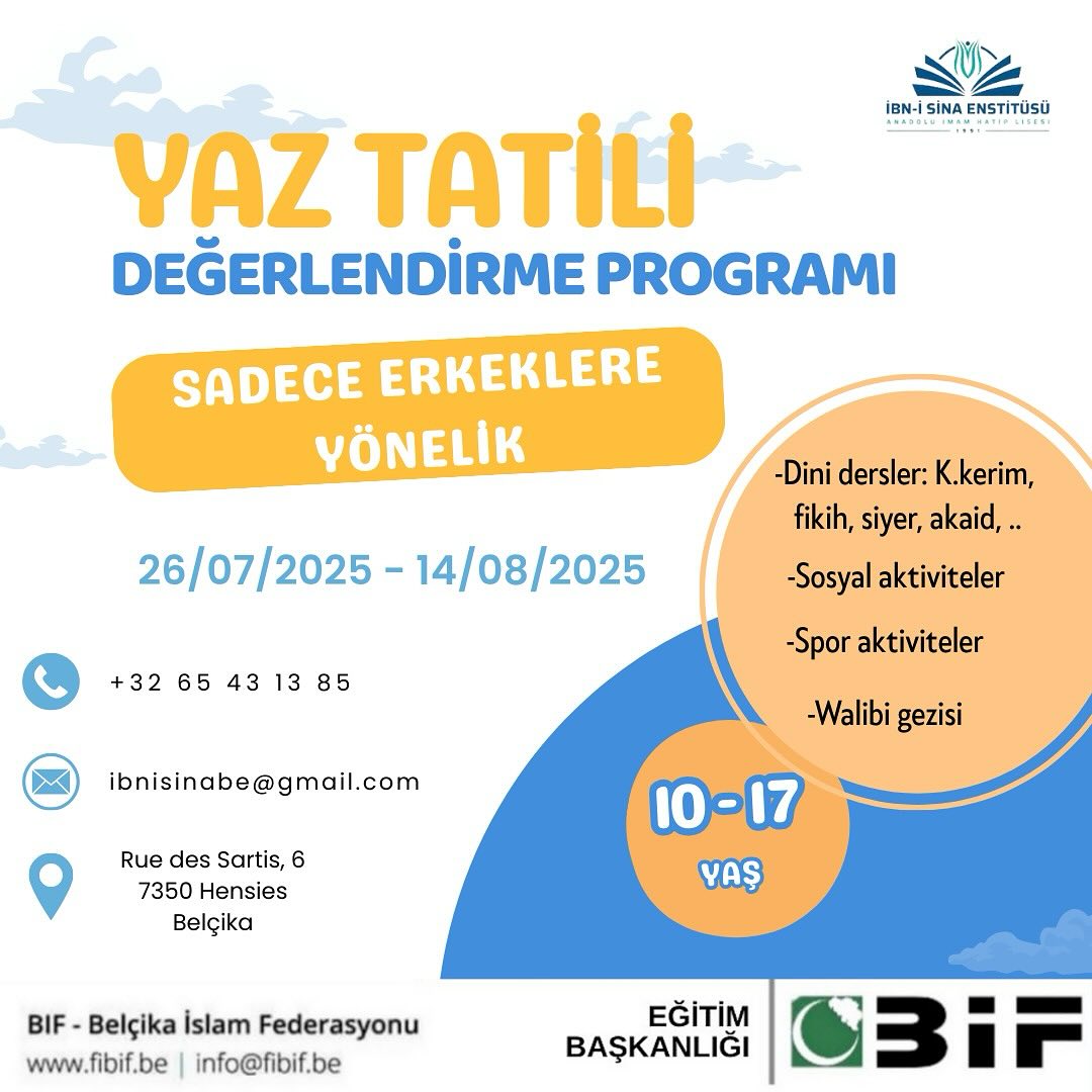 İbn-i Sina Enstitüsü ve BİF Eğitim Başkanlığı iş birliğiyle, yaz tatilini verimli ve dolu dolu geçirmek isteyen öğrencilerimiz için özel kurs programlarımız başlıyor!